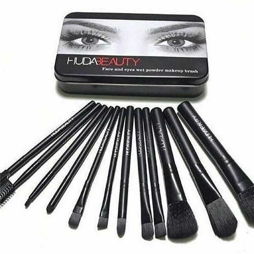 ست براش huda beauty شامل 12 قلم مو در اندازه و کاربردهای متفاوت در یک جعبه فلزی میباشد که دارای قلم موهای در اندازه های متفاوت که با داشتن مویی نرم و لطیف مورد استقبال بسیاری از خریداران قرار گرفته است. ست براش 12تایی هدی بیوتی دارای ویژگی و مشخصاتی است که به دوام و ماندگاری بیش تر مبکاپ روی صورت کمک بسیاری می کنند.