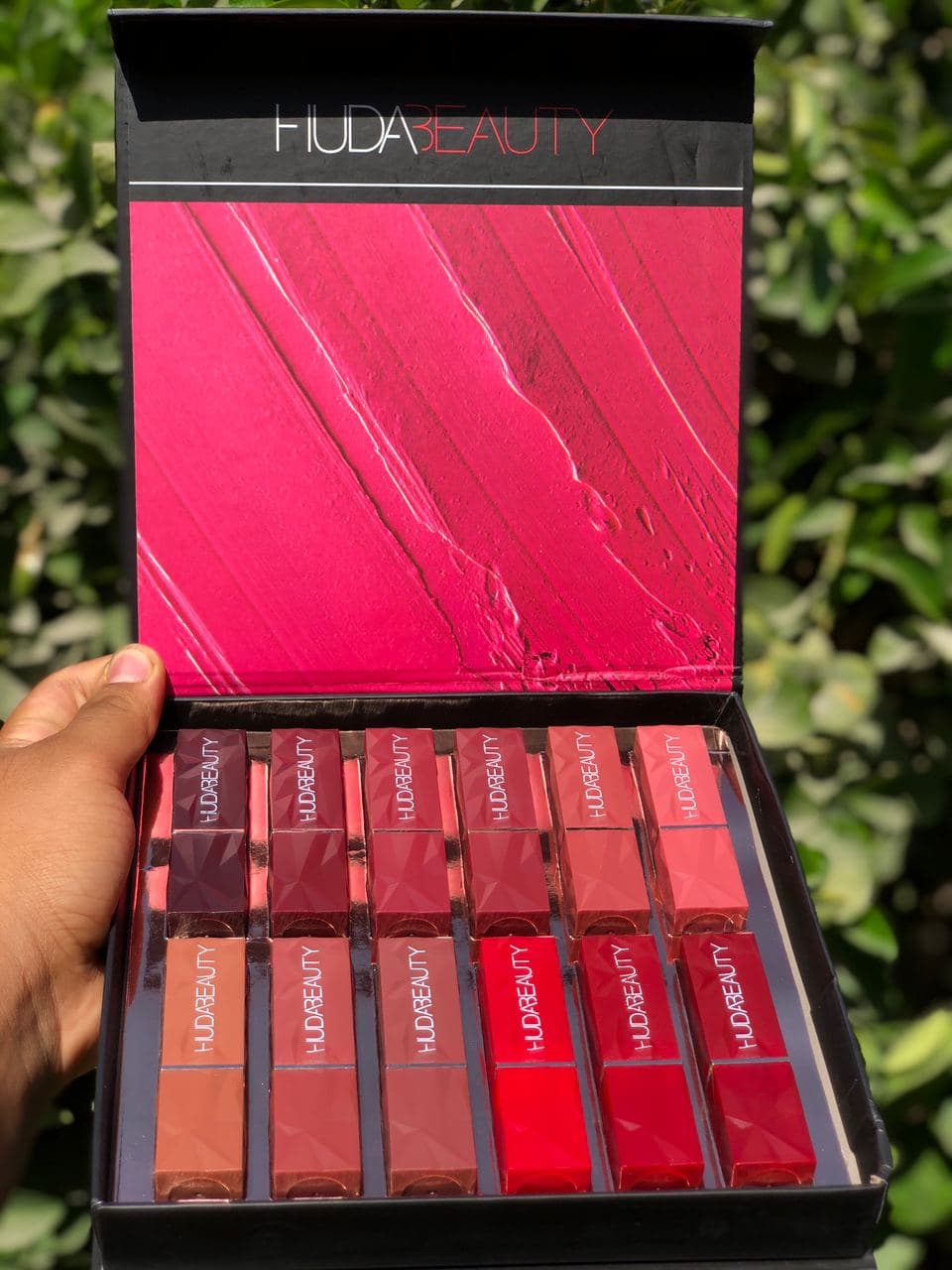 پک رژلب جامد مات Huda Beauty با 12 رنگ بسیار زیبا و پرطرفدار پوششی مات و مخملی را بر روی لب شما ایجاد نموده و مانع از خشکی و ترک بر روی لب شما خواهد شد و بر روی لب پوسته پوسته ایجاد نخواهد کرد. این پک کادویی هدیه ای مناسب برای کادوی ولنتاین و هدیه تولد میباشد که میتوانید با هدیه دادن این پک عزیزان خود را خوشحال نمایید.