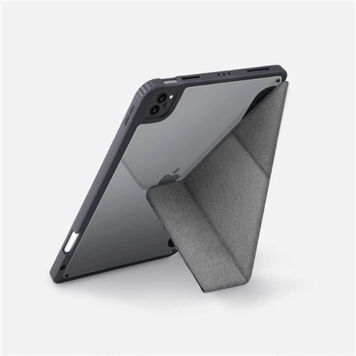 کیف کلاسوری یونیک مدل MOVEN مناسب برای تبلت اپل iPad Pro 11 2021 طراحی شده است . این کاور جدید با پوشش 360درجه بخوبی از تمامی زوایا آیپد شما را پوشش می دهد و از آن در برابر خط و خش و ضربه محافظت می کند . ساختار پشت کیف از پلی کربنات شفاف است و بخوبی زنگ و طرح پشت آیپد را نمایش می دهد و در لبه ها از جنس TPU نرم ساخته شده است . و به خوبی از انتقال ضربه به آیپد جلوگیری می نماید . البته همانطور که در آلبوم تصاویر هم مشاهده می کنید . لبه ها با یک ساختار ویژه تقویت شده است .
