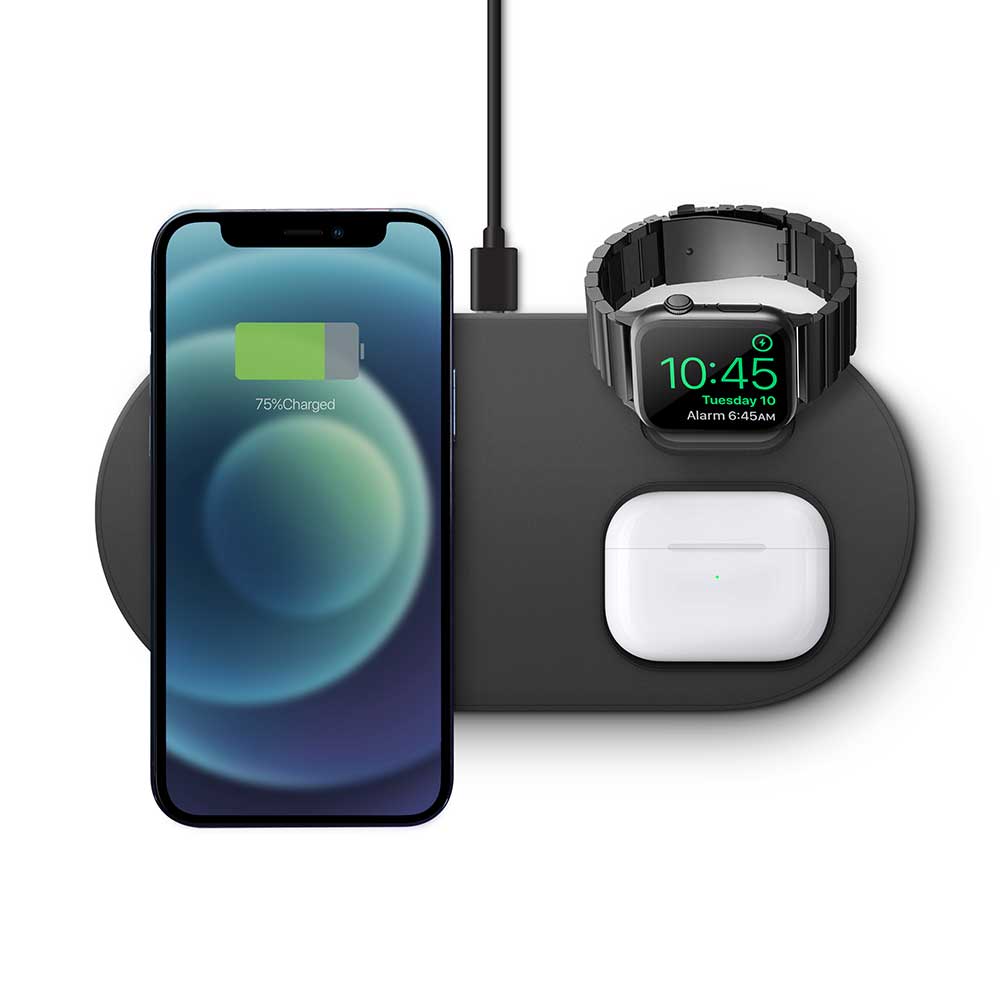 این شارژر می تواند گوشی موبایل را با توان 15 وات شارژ نماید . به این ترتیب این شارژر می تواند در مدت زمان نیم ساعت 40 درصد از ظرفیت باتری گوشی آیفون 12 پرومکس شما را شارژ نماید . ساعت خود را در حالت استند نایت قرار دهید و ار آن لذت ببرید . برای شارژ اپل واچ لازم است که پد شارژ اپل واچ را بر روی این پایه نصب کنید و همراه آن نمی باشد . به همراه این شارژر کابل و آداپتور مخصوص هم ارائه شده است .
