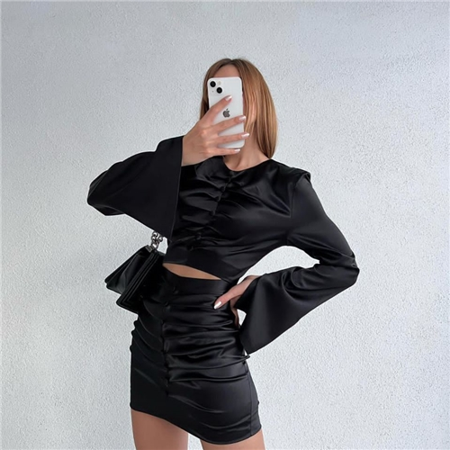 ست بلوز و دامن ساتن مدل گت آستین کلوش زنانه ترک