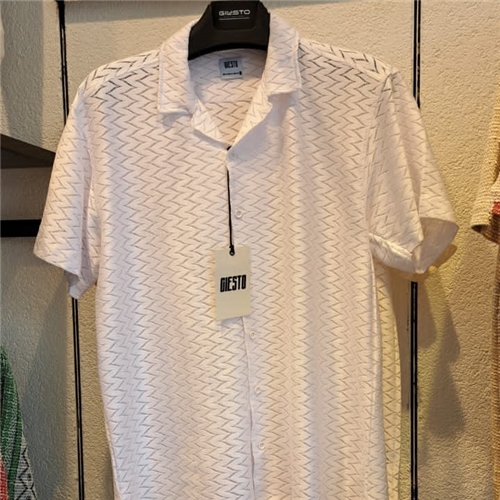 پیراهن مردانه آستین کوتاه پارچه طرح دار خنک