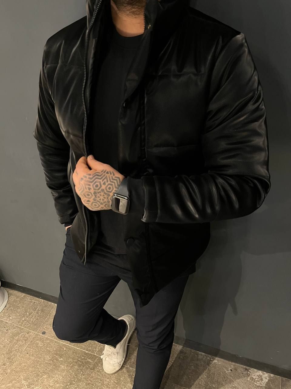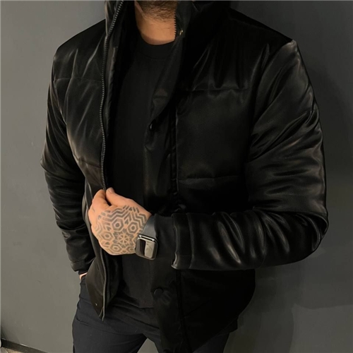 کاپشن مردانه پارچه چرم سیلیکونی داخل آستر