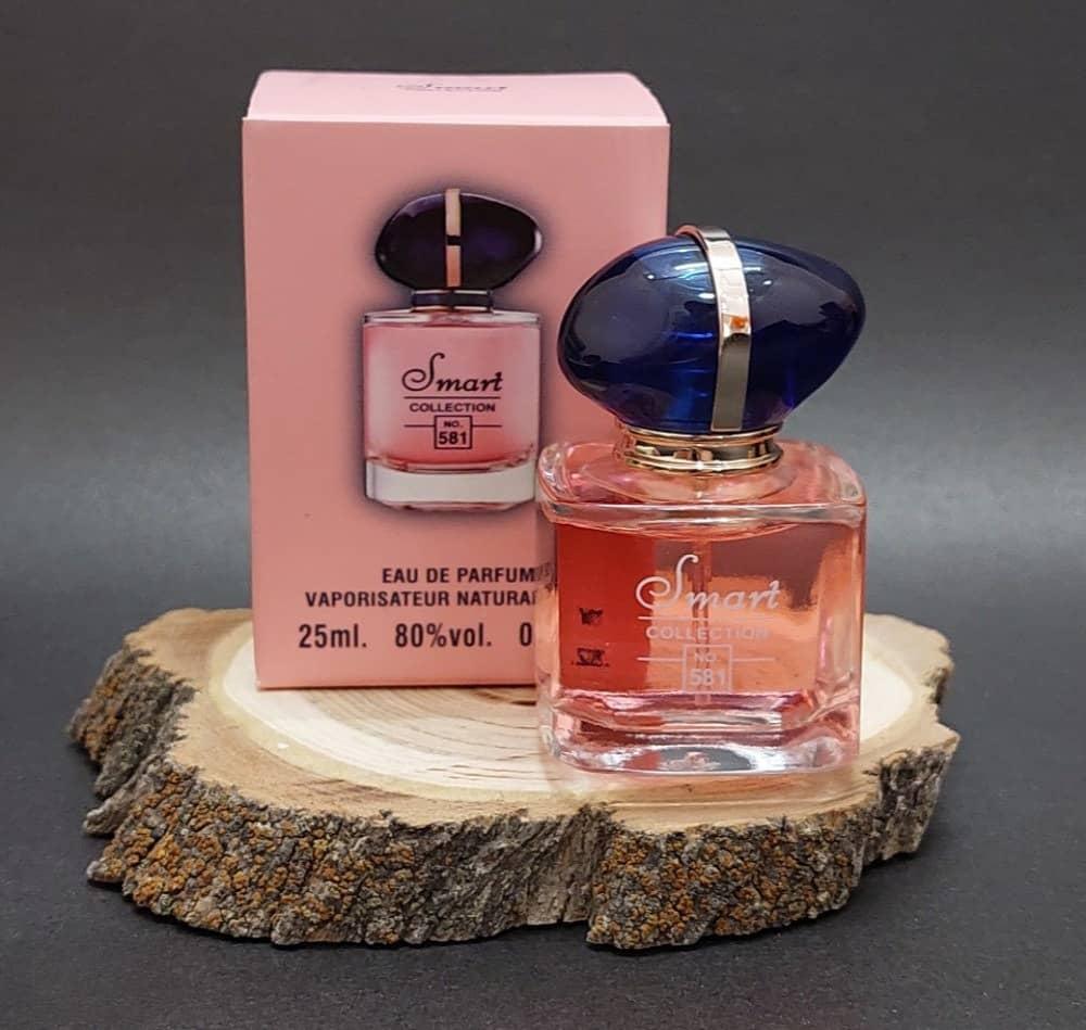 ✔️عطر 25 میل اسمارت کالکشن مدل 581 رایحه جورجیو آرمانی مای وای یک عطر زنانه از خانواده عطر های گلی می باشد. پیش رایحه این محصول شگفت انگیز از ترنج ، شکوفه پرتقال تشکیل شده در ادامه و با گذر زمان میان رایحه آن شامل یاس ، گل مریم می شود؛ رایحه پایه آن نیز وانیل ، سدر و مشک است. این رایحه دل انگیز مناسب برای افراد سخت پسند و طرفدار رایحه های خاص تعریف شده است.