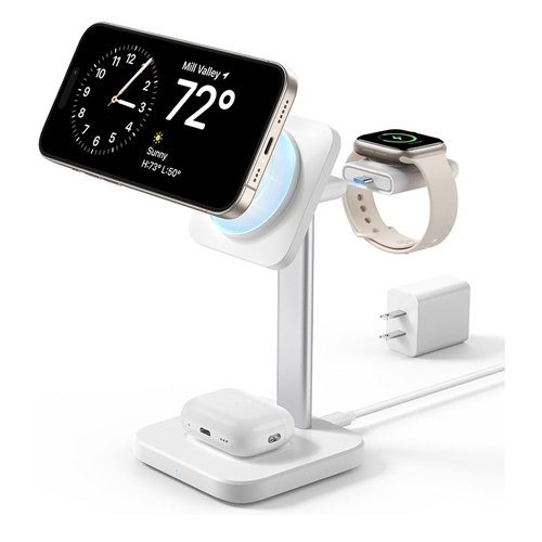 قفل مغناطیسی قوی: با ۱,۰۰۰ گرم نیروی نگهداری مغناطیسی، گوشی شما در حین شارژ بهطور قوی و محکم در محل خود قرار میگیرد. مغناطیسهای داخلی در شارژر واچ و صفحه شارژ AirPods، همچنین اطمینان حاصل میکنند که چیدمان شارژ کاملاً امن و سریع باشد.