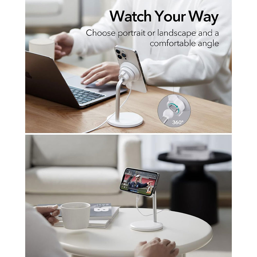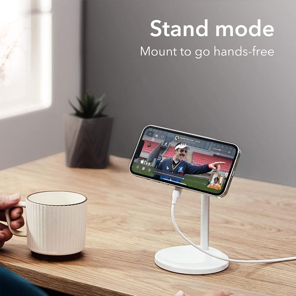 شارژر ESR Shift با داشتن پد شارژ قابل جدا شدن، امکان تغییر سریع بین حالتهای مختلف شارژ را به کاربران میدهد. از حالت استند برای مشاهده ویدیوها یا تماسهای تصویری به حالت آزاد برای تماس، پیامرسانی یا بازی در حالی که گوشی شارژ میشود، سریعاً میتوانید تغییر کنید.