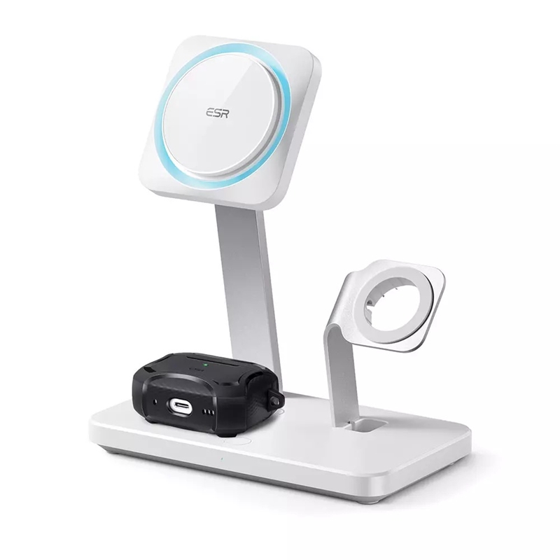 ESR شارژر مغناطیسی ۳in-1 با تکنولوژی CryoBoost™ (HaloLock)، یک شارژر بسیار عالی برای دستگاههای اپل است. با توجه به قابلیت حفظ نگهداری مغناطیسی با قدرت بالا برای iPhone و AirPods، شارژ سریع با سرعت بیشتر از دو برابر شارژر رسمی MagSafe و تکنولوژی جدید CryoBoost™ (HaloLock) برای جلوگیری از داغ شدن دستگاه هنگام شارژ، این شارژر بیسیم یکی از بهترین و جدیدترین شارژرهای بیسیم است که در بازار موجود است.