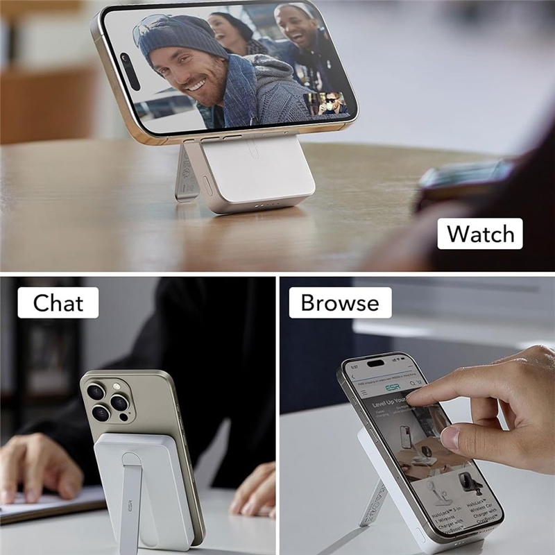 پاوربانکی را انتخاب کنید که کاری بیش از شارژ کردن داشته باشد. پایه قابل تنظیم تعبیه شده را می توان در صورت تقاضا بازگرداند و پاوربانک شما را با روشن یا خاموش کردن شارژ، به پایه ایده آلی برای مرور، تماشای فیلم و FaceTiming تبدیل کند. از قدرت و عملکرد بیشتر در حال حرکت لذت ببرید.