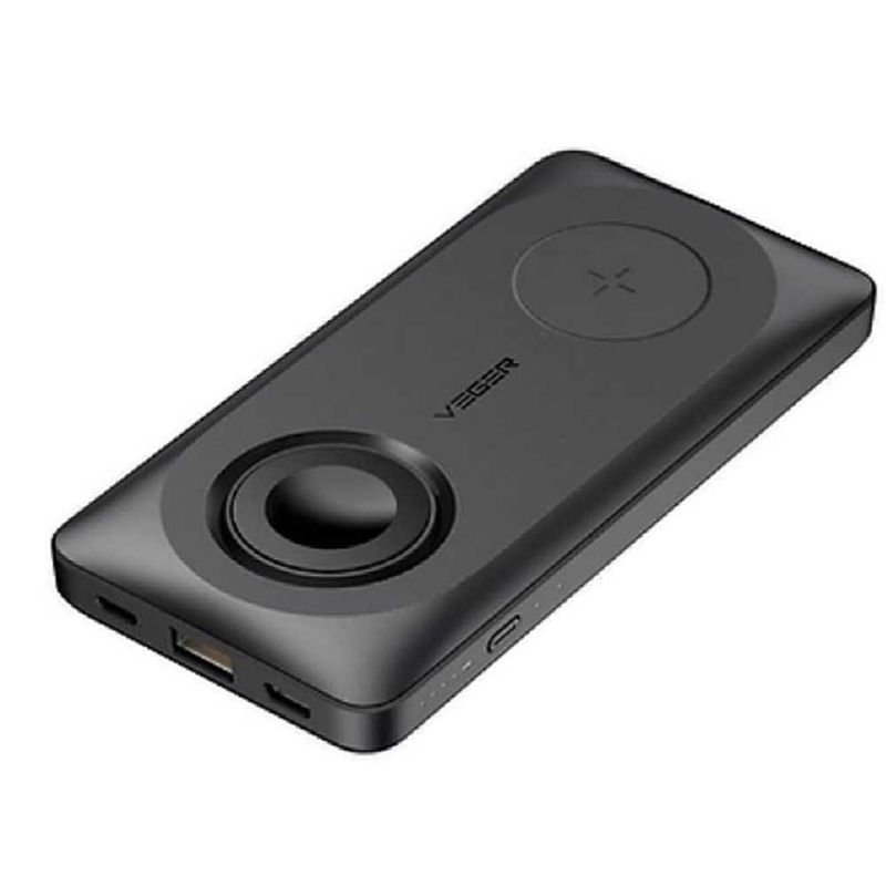 پاور بانک وایرلس برند وگر مدل VEGER MagMulti Wireless Power Bank for iPhone/ iWatch/ AirPods Pro یک پاور بانک چندکاره وایرلس است که علاوه بر شارژ بی سیم برای آیفون، ایرپاد و اپل واچ، قابلیت شارژر قابل حمل با ظرفیت ۱۰۰۰۰mAh به وسیله پورتهای USB-A و Type-C را هم داراست.