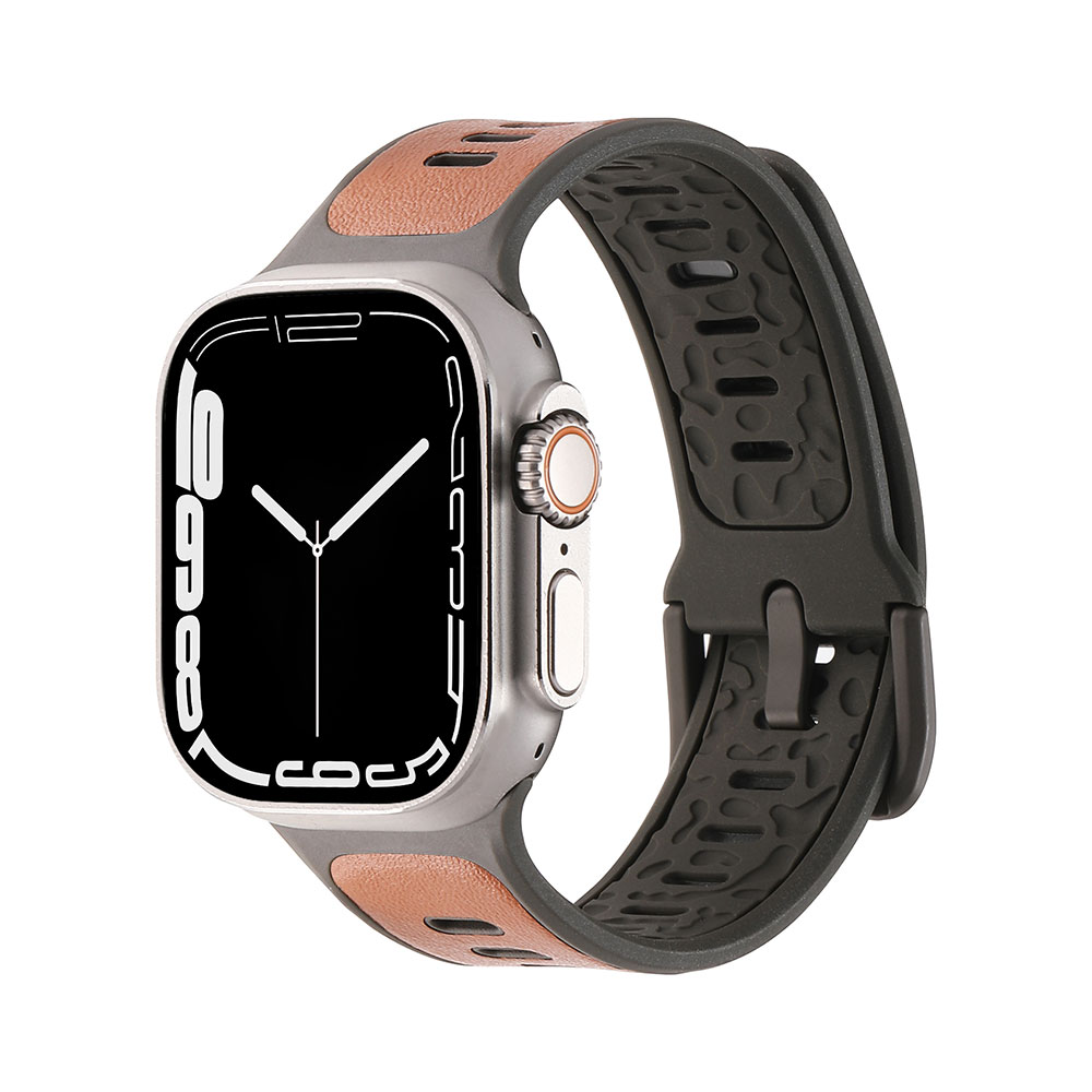 بند جیتک مدل Leather Skin Silicone برای اپل واچ 45/46/49mm